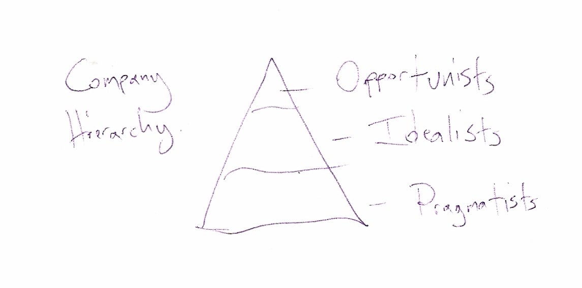 If you’re still with me and reading at this point, I thank you. I have the somewhat romantic goal of defining, via this blog and my upcoming book, a way for us to create organizations that do not require the concessions currently required of the pragmatists and idealists and to do away with these Gervais Principle distinctions.