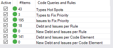 Unlike the previous query group, this one concerns itself exclusively with tech debt. Here, you can really navigate your codebase in terms of technical debt. “Types hot spots,” for example, sorts the debt-heavy types in your codebase by amount of tech debt computed for that type. Thus, you can use this as a quick, “where do I have the most debt” check.