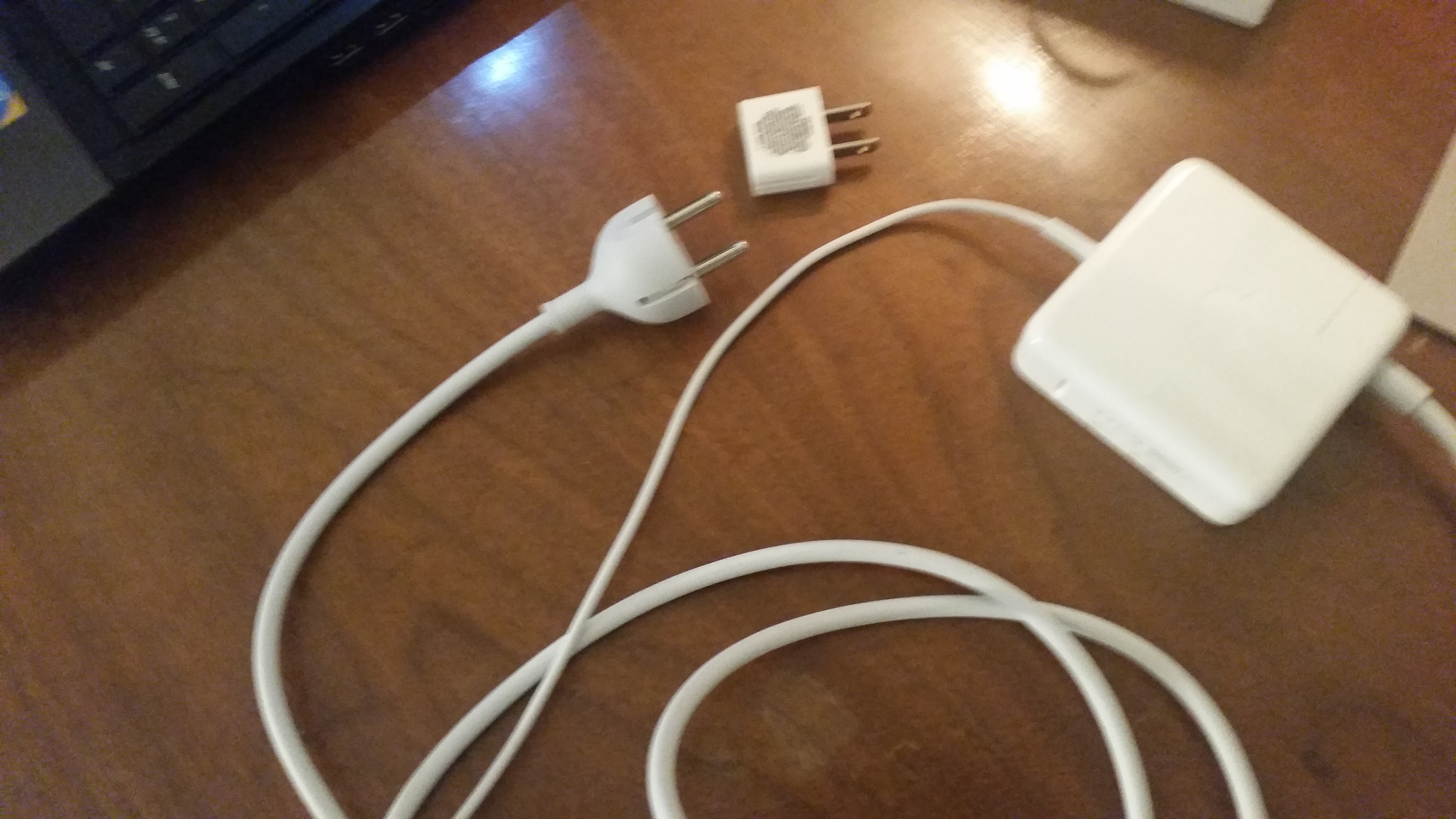 On the way back to my hotel, I did my best to hold out the absurd hope that Apple only sells USA-shaped plugs and that everyone in Europe just buys adapters. I mean, if anyone would do something like that, it’s Apple. But, I opened it up and my slim hopes were dashed. It was made for French outlets, which came in really handy for the 2 weeks that I spent in France. But now that I’m home, it’s fairly awkward. My adapter kit has a USA adapter that I’m using for the moment, but I prefer a better solution. Fortunately, this is possible.