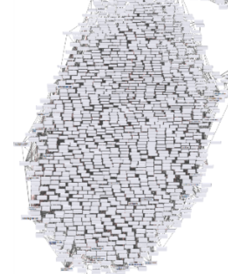 Reality is often much harsher. A lot of people don’t realize it, but there are tools that will generate actual diagrams of your architecture based on your source code and project(s) structure. Still more realize they exist, but don’t actually use them. And if someone like, oh, say a consultant doing a code assessment, were to come along and generate a visualization of the architecture, they would almost invariably be shocked and embarrassed to see that, in reality, it looks like this.